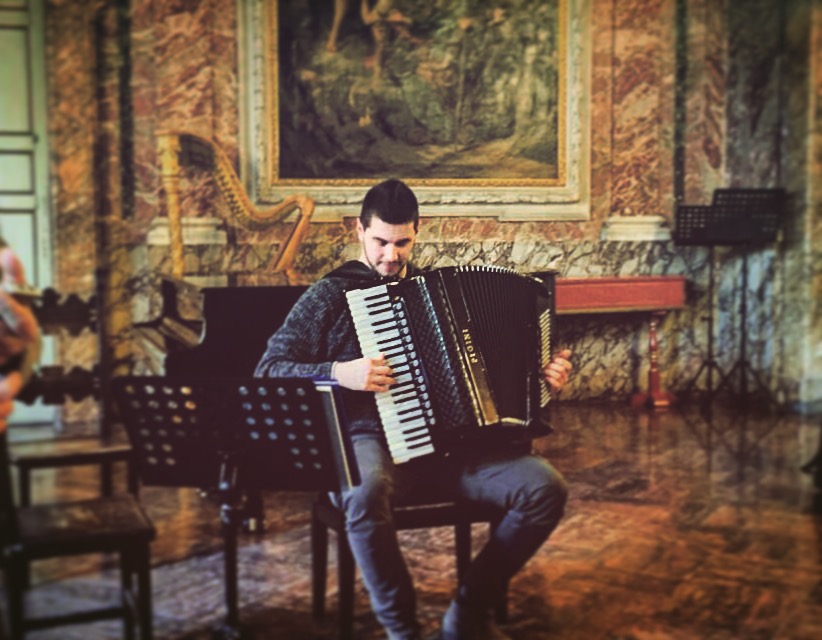 All’età di 4 anni ho iniziato ad avere i primi contatti con la musica avvicinandomi al pianoforte, in seguito verso l’età di 8 anni mio nonno mi ha regalato una Fisarmonica che era la sua grande passione e, con le poche basi che avevo ottenuto studiando pianoforte, ho iniziato a suonare con la fisarmonica la stessa canzoncina che eseguivo al piano ottenendo un ottimo risultato. Di li a poco decisi subito di mettere da parte il pianoforte e di buttarmi sulla Fisarmonica. Il vero percorso musicale inizia all’età di 11 anni quando ho deciso di iniziare un percorso di studi con il M° Joselito Boldorini con l’intenzione di iscrivermi al Conservatorio di Pesaro. Infatti all’età di 13 anni mi sono iscritto al Conservatorio Rossini dove ho studiato e sto studiando ancora oggi sotto la guida del M° Paolo Vignani. Ho avuto modo di suonare in duo, in quartetto, in ensemble di fisarmonica. Per diversi anni insieme ad altri due fisarmonicisti abbiamo formato un trio esibendoci in varie occasioni, persino in Rai al programma uno mattina in famiglia in una gara tra conservatori. Di recente ho ottenuto la laurea Triennale di I° livello al conservatorio G.Rossini di Pesaro con 110. Ho frequentato Masterclass con i Maestri Rojac, Battiston e Scappini.